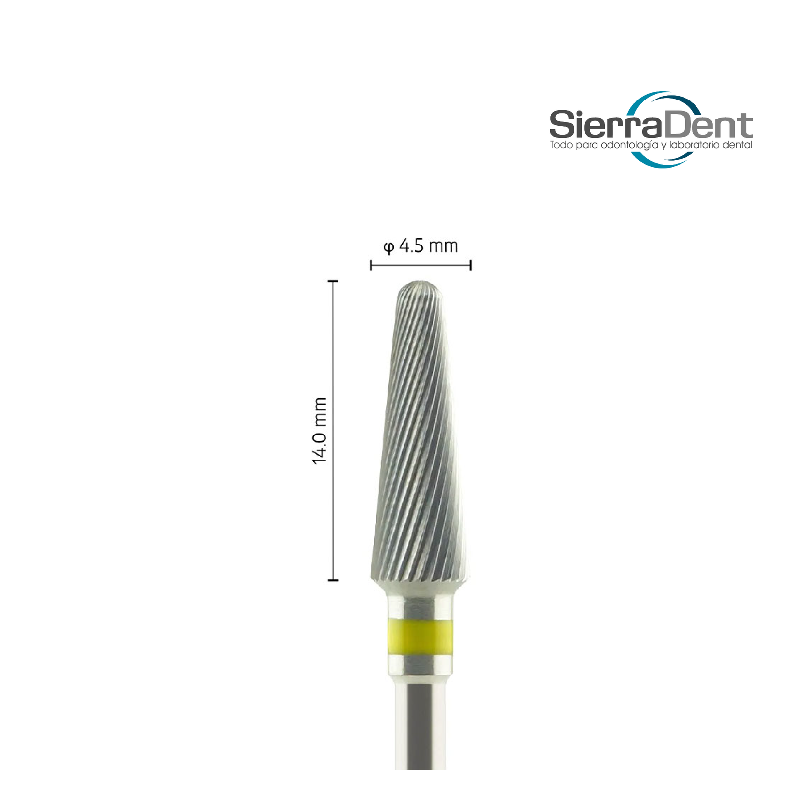 Pimpollo con cobertura de óxido de aluminio, grano medio (amarillo), actuación uniforme y acabado moderado en resinas compuestas o metales. Forma cilíndrica que facilita el ajuste de contornos y bordes gingivales sin dañar tejido. Compatible con micromotor o pieza de baja velocidad.