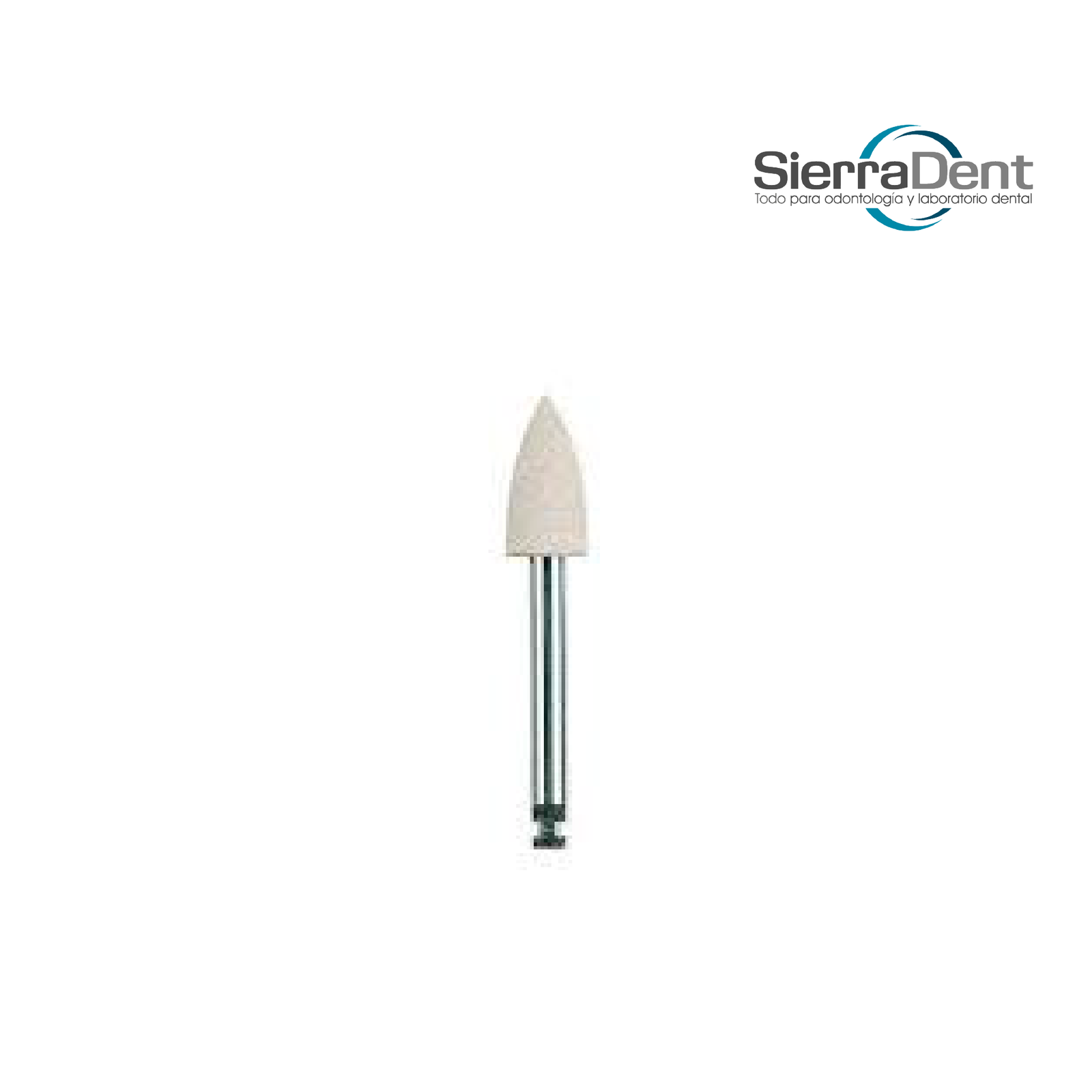 Pulidor dental en punta con acabado Dia Gloss, grano blanco ultrafino, ideal para el pulido final y brillo de restauraciones dentales. Proporciona un acabado suave y uniforme en áreas de difícil acceso. Modelo 19032 RA de Edenta, compatible con micromotores y turbinas estándar.